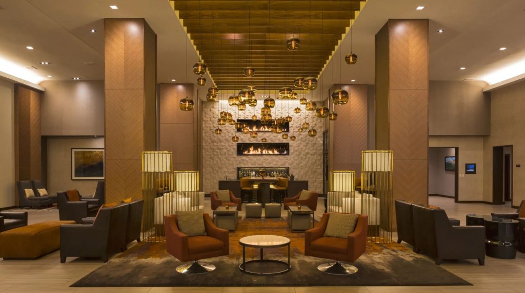 The Grand Hyatt Denver is in the heart of downtown Denver’s entertainment, business and theater districts, conveniently located near 16th Street Mall and minutes from Coors Field and Ball Arena. A signature of the hotel’s dramatic lobby is Fireside | The Bar. Here, guests can relax with their favorite cocktail, enjoy an innovative drink made with the freshest ingredients and join friends and colleagues for happy hour, and enjoy the live music performances from an array of talented artists. Linear stacked fireplaces and dark wood panels overhead envelop the space, making it an inviting retreat during your time in Denver.